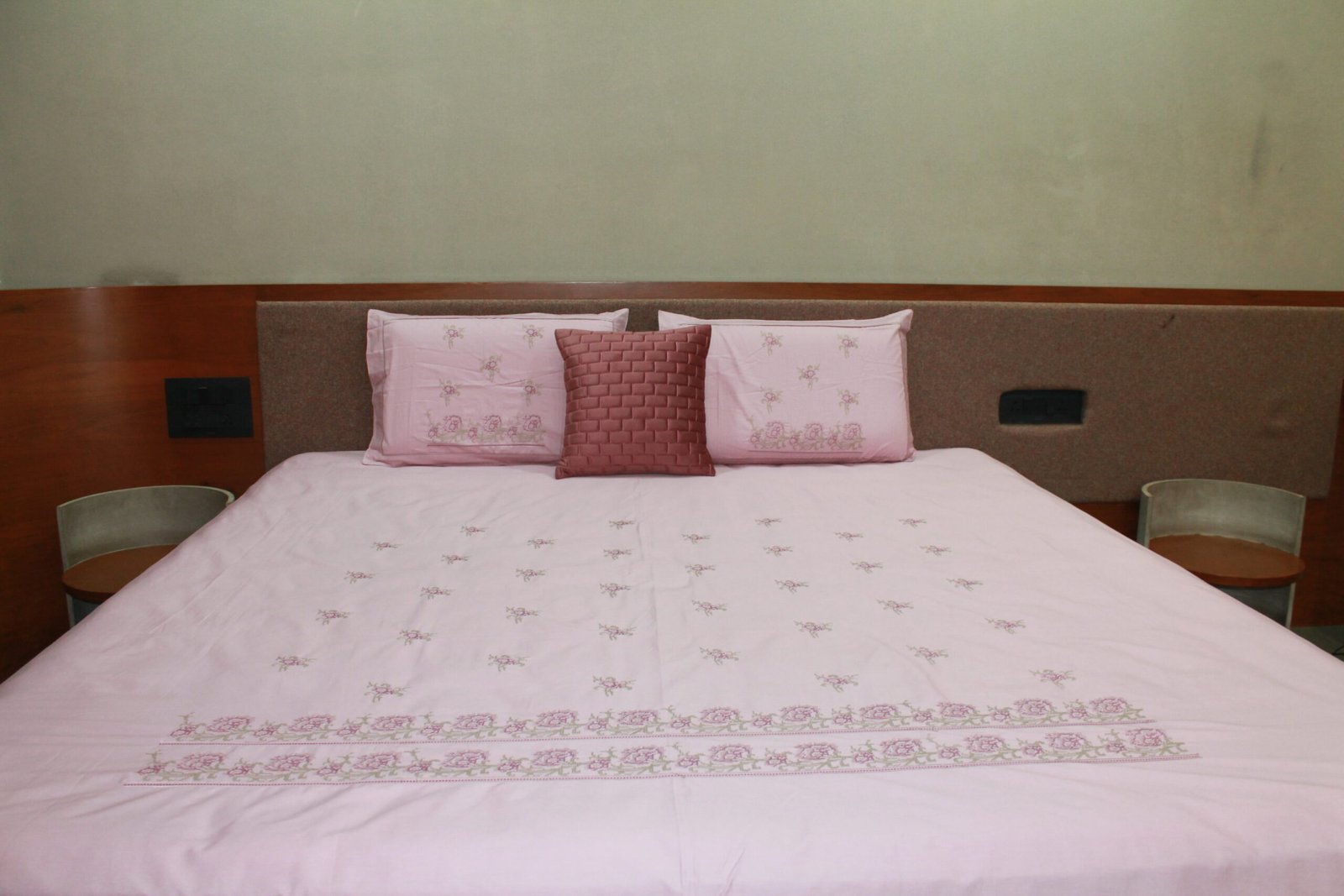 Crafted from 100% premium cotton, this bedsheet ensures a soft and comfortable sleeping experience. The generous king size provides a perfect fit, while the quality embroidery enhances the overall sophistication of the set.