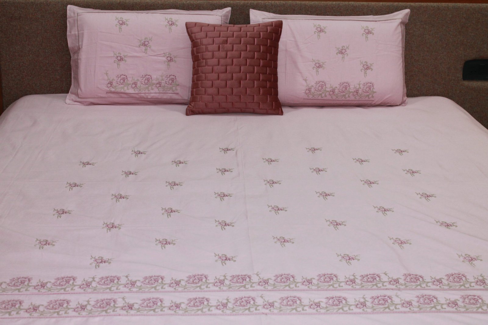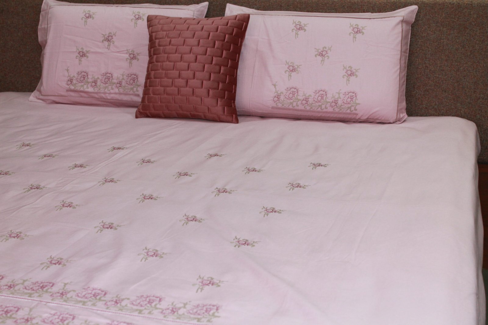 • Complete Set: Includes 1 embroidered bedsheet (108″ x 108″) and 2 embroidered pillow covers (18″ x 27″).